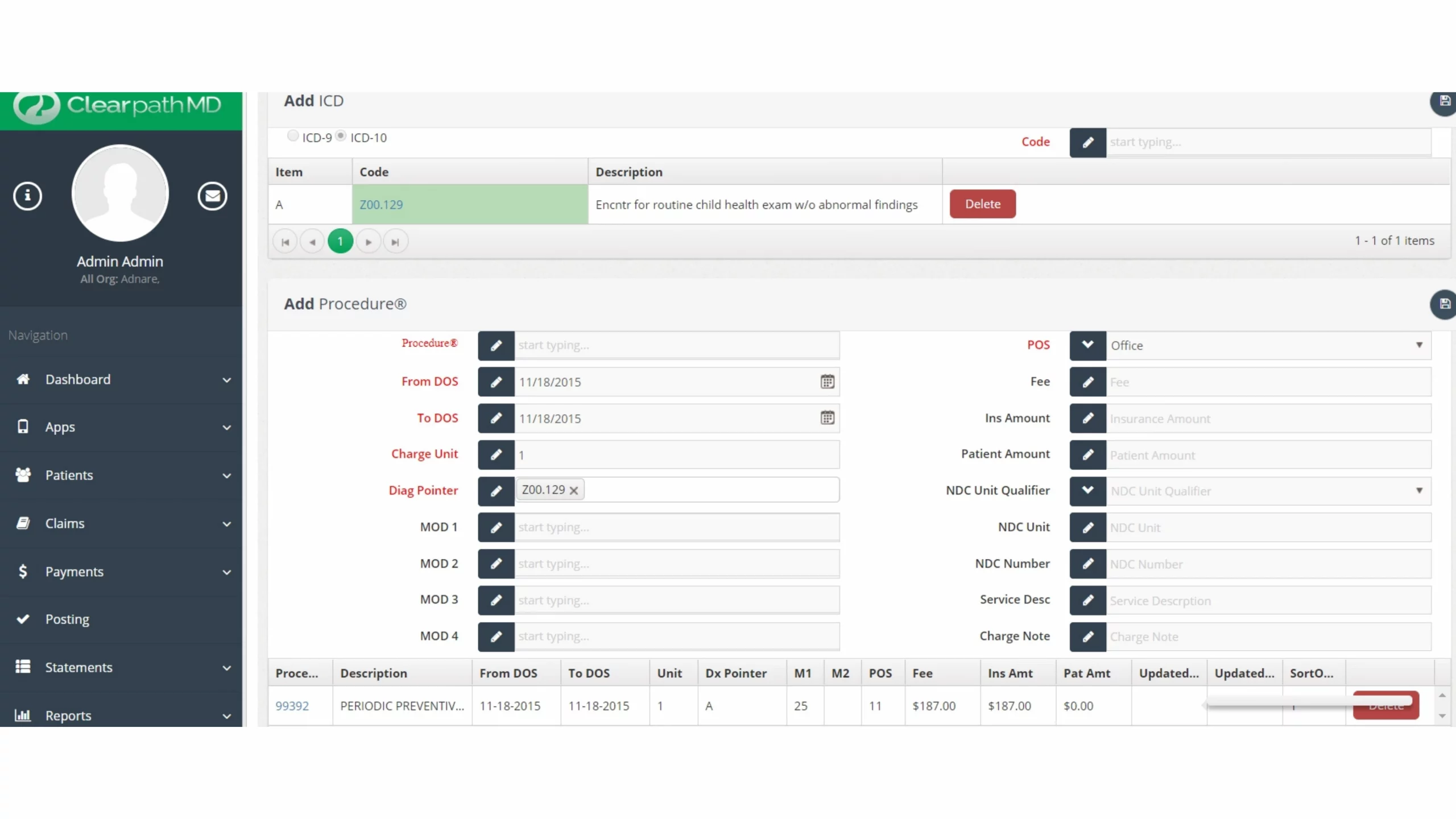 Our claim scrubber ensures claims are edited and accurate before they ever leave our system. DX for ICD10 alerts you of non-payable codes, allowing the cleanest claim rates available on any system.