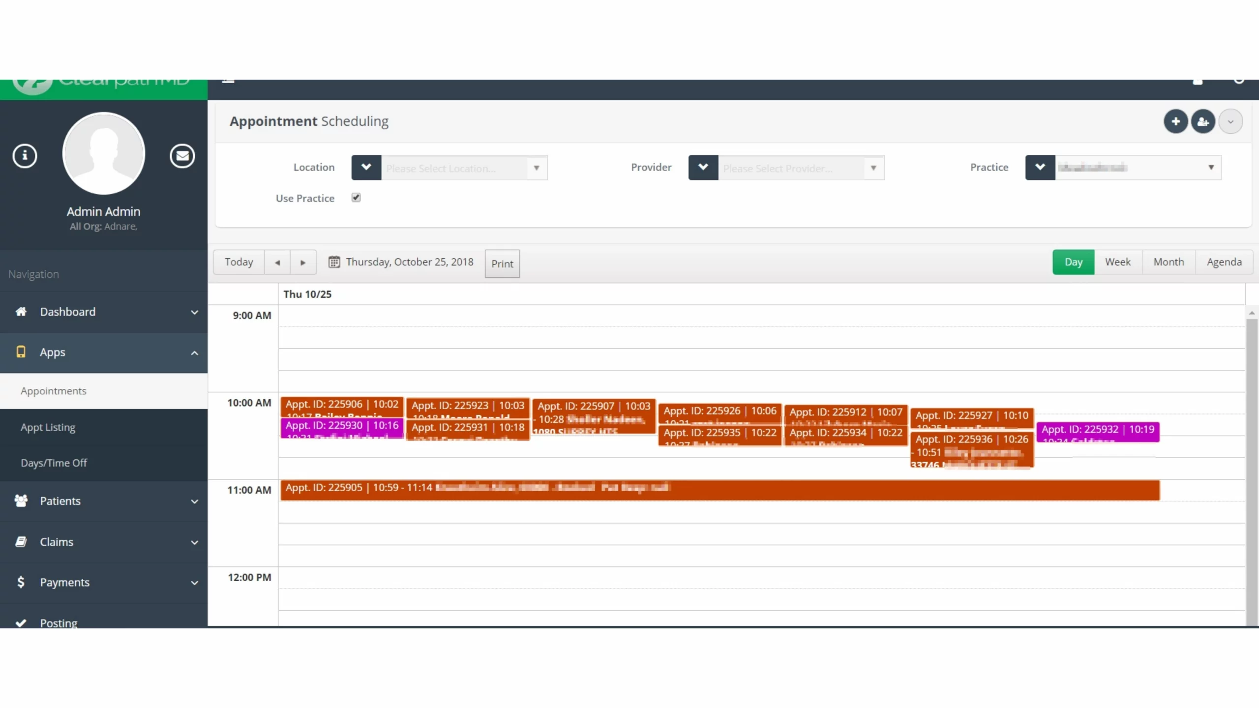 ClearpathMD’s appointment scheduler allows simplified entry of patient demographics, insurance information and UPSP verified address confirmation. Check patients in, print routers and set up specific appointment types with ease.